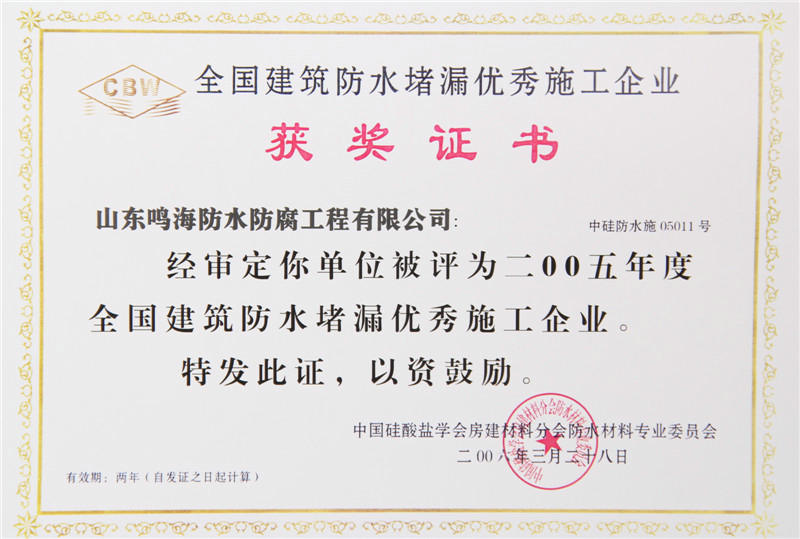 山東鳴海防水集團有限公司是科工貿(mào)為一體的綜合性企業(yè),成立于一九九八年,下設三個子公司、一個分公司、五個辦事處,分別為山東宇鳴防水保溫有限公司、威海市鳴海防水材料有限公司、威海宇鳴新型材料有限公司,宇鳴科技有限公司是中國建筑協(xié)會理事單位,連年評為企業(yè)誠信單位。在全國成立了多個辦事機構(gòu),分別為新疆、銀川、蘭州、青海、青島、大連、濰坊、北京等多個城市。