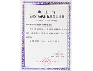 企業(yè)產(chǎn)品執(zhí)行標準登記證書